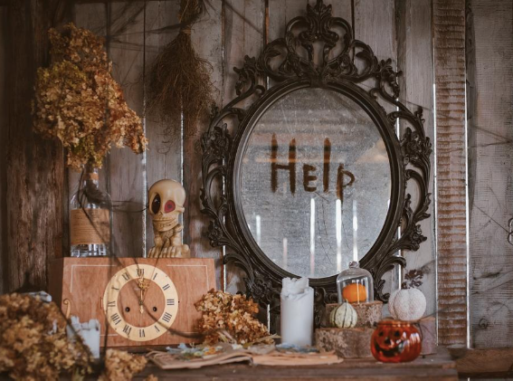 Step into the mystical world of haunted mirrors. These bewitching creations not only serve as reflective surfaces but also as portals to the unknown. With a bit of imagination and some glass etching cream to create spooky designs, you can turn any mirror into a piece of haunted art. Encase your haunted looking glass in an antique frame to complete the look.