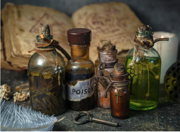No witch’s lair is complete without a collection of vintage bottles filled with mysterious elixirs. Craft your own creepy potion bottles by sourcing various glass containers and filling them with colored liquids. Create spooky labels with names like “Poison,” “Bat Wing Tonic,” and “Vampire Blood” for your bottles. Then, arrange them on shelves for a scary vibe.